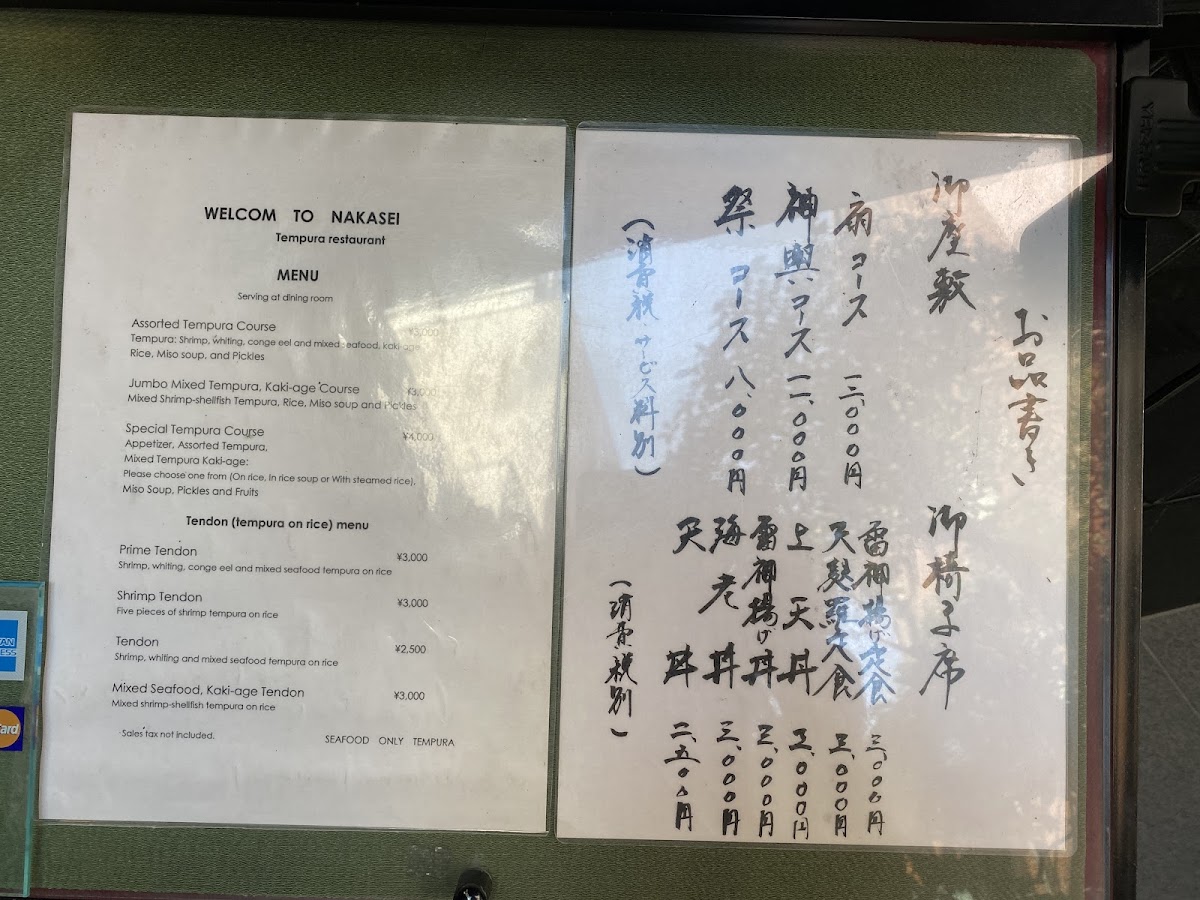 Visitors often choose Nakasei for leisurely lunches or intimate evening meals, where each dish invites quiet appreciation within the calm, classic Japanese setting. Examples from the menu include the tempura set meals with items like two plump prawns, anago (eel), and small kakiage, as well as course offerings featuring vinegared dishes and fresh sashimi that complement the tempura perfectly. Rice, miso soup, and carefully chosen pickles complete the meal, grounding the experience in warmth and tradition.